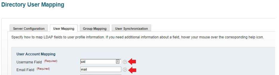 If you are provisioning users from a directory server, you can use the User Mapping tab to map selected user fields to be synced with your Jive user information. This article provides the steps for determining the user information that LDAP and Jive will share. It also provides information on using the User Mapping tab for enabling externally accessible groups and disabling Jive user accounts.