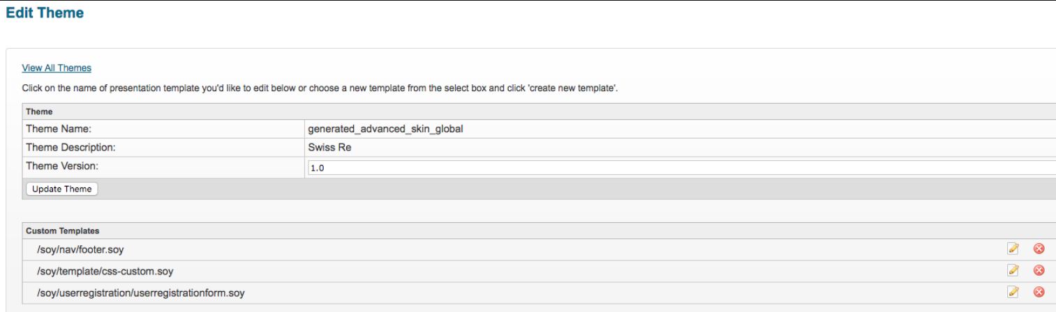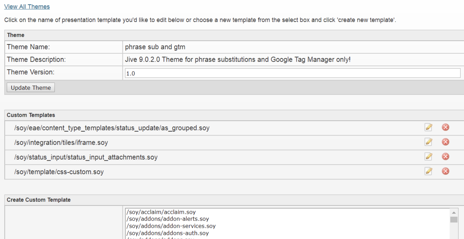 - Make the changes and press Save Template. On the Edit Theme page, the file now shows up in the list of Custom Templates.